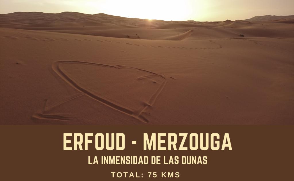 Nos despedimos del campamento y del monumento natural de dunas del Erg Chebbi con la primera luz del día, cuando el sol empieza a incendiar la arena y proyecta sombras alargadas que parecen mover el desierto. Tras llegar al punto base, el rugido de las motos rompe el silencio matinal y marca el inicio de una etapa larga y exigente.