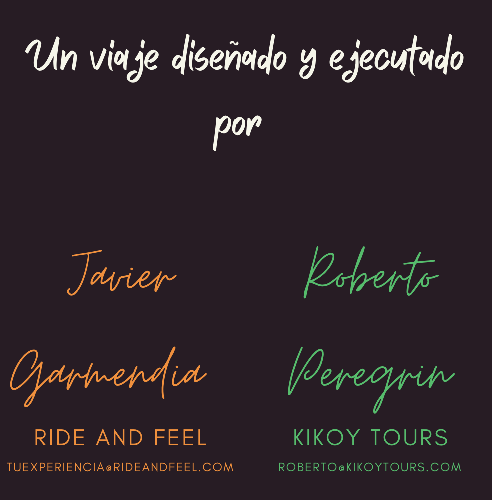 Fiel a mi estilo Ride & Feel, será una aventura. Como siempre, el grupo estará formado por un número reducido de viajeros que participen de nuestra misma filosofía. Sabemos que nuestros viajes no son para todos. Son intensos en todos sus aspectos. Son una genuina experiencia de mototurismo de aventura, con la cobertura y la organización de una de las agencias de viajes con más tradición en este tipo de actividades: Kikoy Tours y Roberto Peregrin.