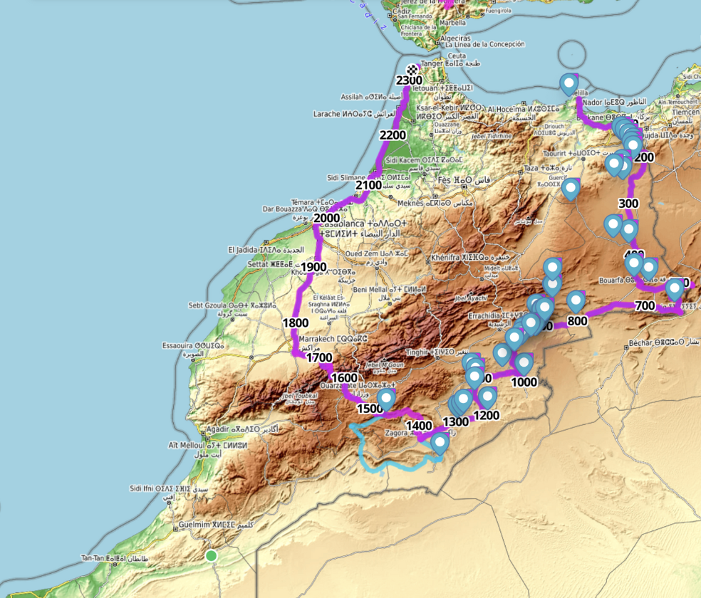 Nos esperan más de 2,300 kilómetros por Marruecos cuyo itinerario está detalladamente trabajado para generar el mayor impacto sensorial posible dentro de la filosofía de este viaje. 9 días compartidos con un número reducido de motos para no perder nuestro estilo personal.